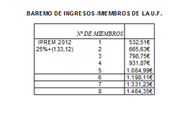 BAREMO DE INGRESOS /MIEMBROS DE LA U.F.