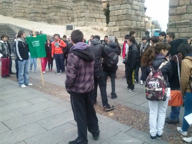 El jueves 13 de diciembre la Marea Verde volvió a dejarse ver en Segovia. Por la mañana, a las 12:45 h., la Plataforma por una Educación Pública convocó una reunión en el Azoguejo en contra los recortes en educación y contra el proyecto de ley (LOMCE). Por la tarde, a las 18:00 h., convocó otra marea verde ciudadana ante la sede de la Dirección Provincial de Educación.