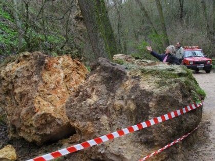 La pasada noche se ha desprendido una roca en el Valle del Clamores. La concejala de Medio Ambiente, Paloma Maroto, ha visitado la zona para comprobar, junto al personal de la Concejalía y del Servicio de Bomberos, la situación. La roca caliza de 6 m3 se deslizaba por la ladera hasta el camino sin ocasionar daño alguno, ocupando parte del paseo, aunque es posible transitar por él sin dificultad. Una vez acordanada la zona, se procederá a disgregar la roca para retirarla con mayor facilidad del camino y recolocar los fragmentos en la zona (fuera del paseo) para que forme parte del paisaje verde.