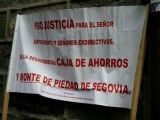 Atilano Soto estaba citado a las 10 de la mañana en calidad de presidente del Comité de Retribuciones de la extinta caja segoviana, hoy integrada en Bankia. Durante su declaración, un ex empleado de la entidad, Damián Sanz, ha desplegado una pancarta ante los juzgados pidiendo justicia ante el expolio de Caja Segovia.
