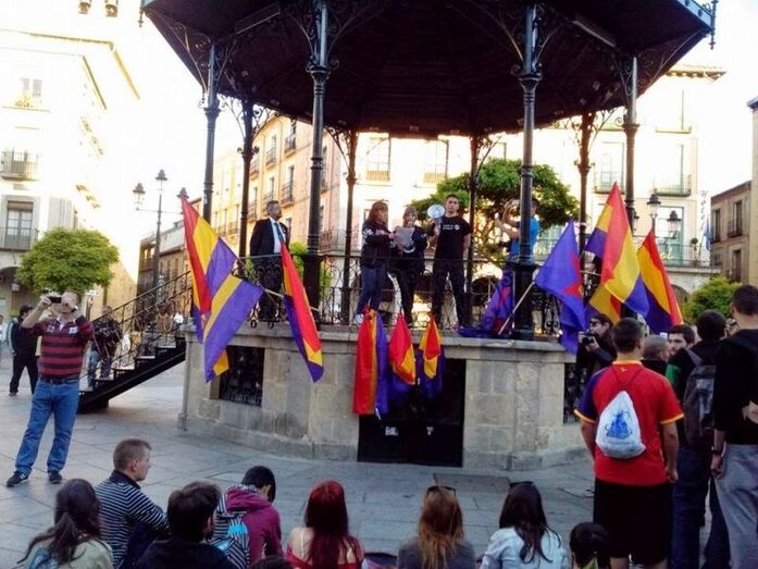 Varios cientos de personas se reunieron este lunes, 2 de junio, en la Plaza del Azoguejo para reivindicar el derecho a decidir el modelo de Estado, si se quiere una Monarquía o una República, tras el anuncio de la abddicación del Rey. La convocatoria, realizada a través de las redes sociales, se produjo también en numerosas ciudades españolas. A la cita acudieron, con numerosas banderas republicanas, miembros de partidos políticos, sindicatos y movimientos sociales. Finalmente, se leyó un comunicado en la Plaza Mayor. (Ver adjunto el comunicado)