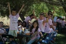 Pequeños y mayores se enfundaron las camisetas rosas del apoyo a la Asociación Española Contra el Cáncer y disfrutaron de una macarronada con el sabor especial de una buena causa.
