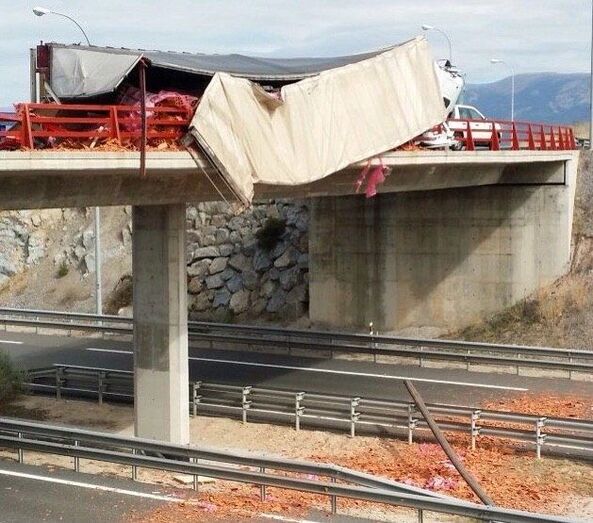 No fue el único accidente con camiones que se produjo en Segovia este lunes. La Dirección General de Tráfico (DGT) advirtió de un corte total en la AP-61 en sentido creciente de la kilometración hacia Segovia, desde las 14:45 horas, por un obstáculo fijo por accidente con circulación difícil en el kilómetro 86.5 en Segovia. A través de las redes sociales, usuarios informaron de que un tráiler había tenido un accidente y se había caído la carga en la carretera.