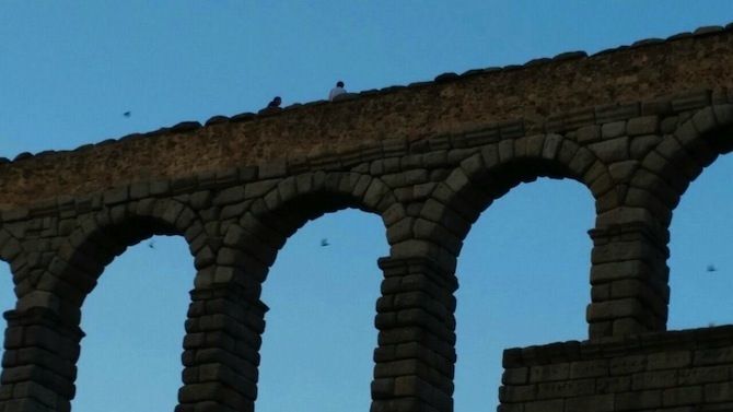 Policía y Bomberos bajaron a un joven de lo alto del Acueducto en la tarde de este martes. Desde las 21:00 horas hasta las 22:00 horas, la presencia de un hombre en la parte más alta del Acueducto mantuvo en vilo a las numerosas personas que pasaban por allí y a quienes se enteraron del suceso a través de las redes sociales.