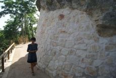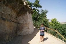 La concejala de Patrimonio Histórico y Turismo, Claudia de Santos, ha comprobado esta mañana el estado de la escalera y roca en la zona de la Cueva de la Zorra tras las obras realizadas.