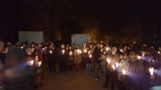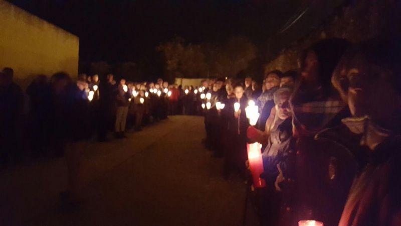 [Img #32837]Guiados por velas, feligreses de todas las edades subieron por un estrecho camino huerta arriba hacia las Peñas Grajeras, entre cipreses y frutales en flor, con un impresionante triángulo iluminado formado por la Veracruz, la Catedral y el Alcázar de Segovia como telón de fondo. A lo largo del ascenso, las estaciones iluminadas por lucernarias iban mostrando diferentes escenas de la Pasión de Cristo, desde la condena a muerte hasta la resurrección, acompañadas de una cuidada recreación sonora, no exenta de poesía mística.