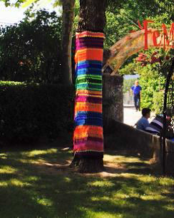 [Img #32912]En La Estación de El Espinar, un núcleo de unos 700 habitantes, el ganchillo es el protagonista. Un grupo de más de 60 mujeres desde los 8 hasta los 92 años ha aceptado el reto propuesto por FEMUKA 2016 (Festival de Música en la Calle), que se celebrará en la localidad durante los días 24, 25 y 26 de junio, y desde el pasado mes de octubre están tejiendo piezas de ganchillo para decorar árboles, farolas y cualquier otro tipo de mobiliario urbano.