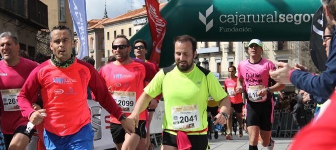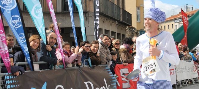 Normalmente, los domingos deportivos segovianos tienen protagonistas diminutos con retos pequeños, para quienes el verbo madrugar no existe como concepto, y a quienes no les importa cambiar dibujos animados por partidos con los amigos del cole. Sin embargo, ocurre que de vez en cuando, los domingos se envalentonan y se ponen las zapatillas que pasan el 38, los pantalones cortos, se cuelgan un dorsal e inventan una prueba a lo grande. Con cuestas gigantes, obstáculos en forma de adoquín, animadores al por mayor y competidores inmensos desde el mismo momento en el que pagan una inscripción y forman parte, como hoy, de una carrera de 21,5 Km.