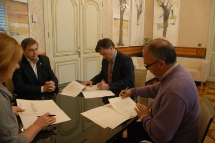 En la firma del convenio, que tuvo lugar en el despacho de Presidencia, estuvieron también presentes el diputado de Acción Territorial, Basilio del Olmo, y la secretaria general de la Diputación, Lourdes Merino.