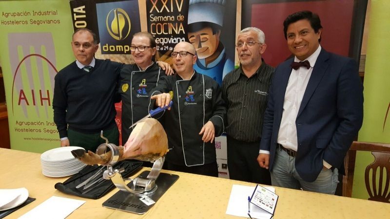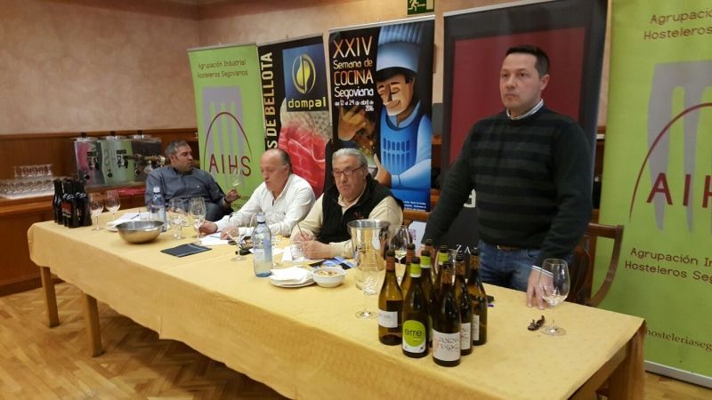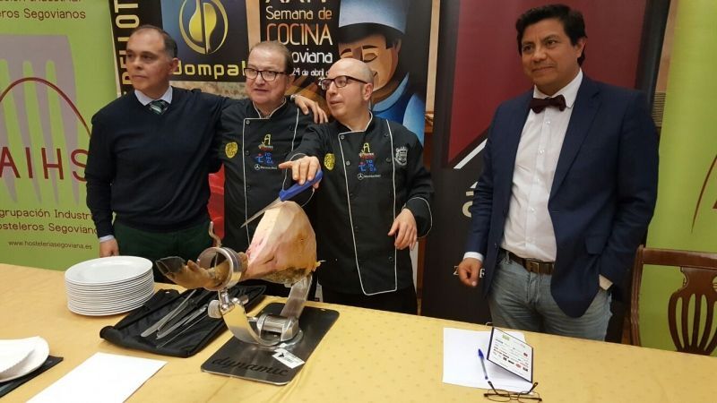 La XXIV Semana de la Cocina Segoviana prosiguió este jueves con una cata de vinos y una masterclass de corte de jamón dirigida por la Asociación de Sumilleres de Segovia y de Castilla y León. La clase magistral de corte de jamón fue por gentileza de Jamones Dompal. La celebración, con entrada libre y degustación, tuvo lugar en el Restaurante El Rincón del Segoviano-Hotel Acueducto y contó con los vinos de las bodegas Zarraguilla y Erre.