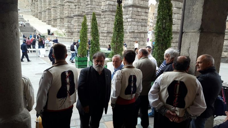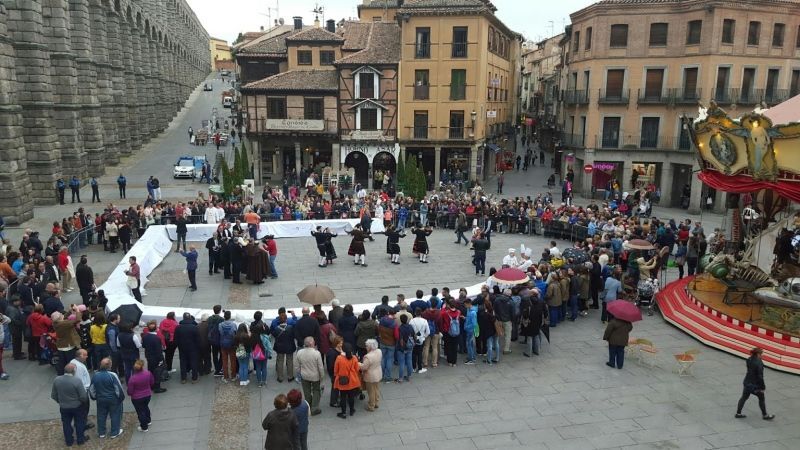 Ni la lluvia, ni la ausencia de Pepe Rodríguez de MasterChef, quien no pudo ejercer de pregonero al retrasarse su vuelo desde Palma, impidieron a los segovianos celebrar la IV Fiesta de la Exaltación del Cochinillo, que puso punto final a tres intensos días de Congreso de Turismo y Gastronomía en la ciudad del Acueducto. Finalmente fue el ‘origenial’ periodista Javier Pérez Andrés quien ofició. “Esta Plaza del Azoguejo es un museo vivo. Es historia y es gastronomía”, glosó.