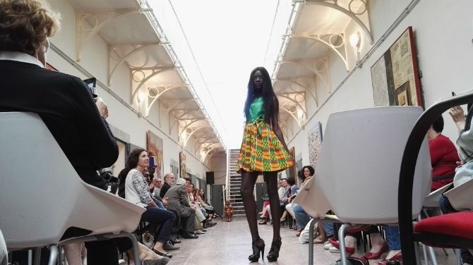 El pasillo central de las galerías de La Cárcel se convirtió en pasarela de los diseños de Alouine Sene realizados en los talleres promovidos por la Fundación Hispano Africana para el Intercambio Artístico Cultural.