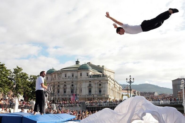 Y por último, cerrando la programación, a las 22:00 h comenzó la coreografía aérea Collage de BotProject, una compañía de circo contemporáneo que interpretó la historia de unos artistas que quieren cambiar el guión, contada con saltos de gran altura, acrobacias que desafían a la gravedad, equilibrios, manipulación de objetos y altas dosis de ingenio y de humor.