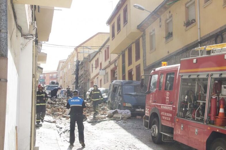 El servicio de emergencias 112 tuvo conocimiento del suceso sobre las 5:30 de la mañana y, tras dar aviso a bomberos, Policía Local, Policía Nacional, empresas de gas y emergencias sanitarias, confirmaron el fallecimiento de la mujer, Luci, -que vivía con su marido en el segundo piso- y trasladaron en UVI móvil al varón herido grave con quemaduras -Carlos, albañil, que vivía solo en el 1º-, al Complejo Asistencial de Segovia primero y a la unidad de quemados del Hospital Río Hortega de Valladolid después, donde permanece estable dentro de la gravedad. Este diario se ha hecho eco por error de su fallecimiento publicado en distintos medios citando fuentes municipales, por lo que pedimos disculpas a la familia y a los lectores.