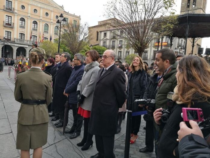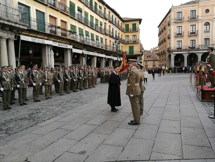 La Plaza Mayor de Segovia ha sido el escenario de la celebración de la festividad de Santa Bárbara, con un solemne acto militar de Jura de Bandera de personal civil presidido por el General de División Director de Enseñanza, Instrucción, Adiestramiento y Evaluación, Amador Enseñat y Berea. En los actos han participado alféreces alumnos de 5º curso de la Enseñanza Militar para el Ingreso en la Escala de Oficiales (305 Promoción), sargentos alumnos de 3º curso de la Enseñanza Militar para Ingreso en la Escala de Suboficiales (XLII Promoción), caballeros y damas alumnos de 1º curso de la Enseñanza Militar para Ingreso en la Escala de Suboficiales (XLIII Promoción) y una sección de Militares Profesionales de Tropa que han desfilado por las calles de Segovia desde la Academia hasta la Plaza.