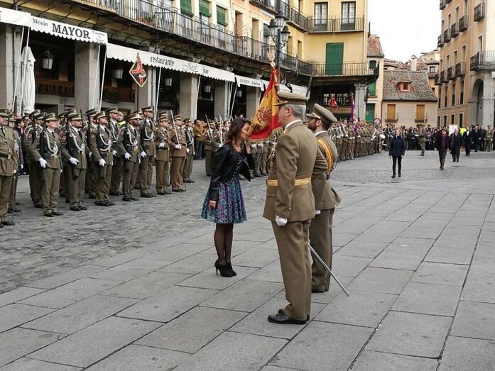 El coronel director de la Academia de Artillería, Javier Alonso Bermejo, se ha referido a la festividad de Santa Bárbara y ha señalado que las Fuerzas Armadas no tienen el patrimonio del compromiso con la bandera. Por su parte, Clara Luquero, que ya había felicitado a los artilleros en el día de su patrona y había destacado la buena sintonía existente entre la institución militar y la ciudad, ha explicado en qué términos de mutuo acuerdo se ha cumplido este año la tradición de colocar la bandera de España de los artilleros en la Virgen del siglo XVI del Acueducto.