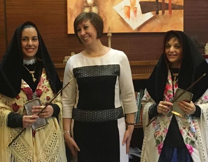 Tras recibir el bastón de mando en el Ayuntamiento de la capital, Vanesa González y Maite Cocero, vestidas para la ocasión con el traje ‘de avisar’, han acudido a la sede de la Administración regional en nuestra provincia y han invitado personalmente al delegado territorial a los actos programados en honor a Santa Águeda, actos que recordarán una tradición ancestral que se remonta al año 1227, una de las fiestas más originales y vistosas de Castilla y León, declarada de Interés Turístico Nacional en 1976. Javier López-Escobar ha agradecido el gesto de las alcaldesas, les ha deseado lo mejor para la fiesta de este año y les ha obsequiado con un ejemplar a cada una del libro ‘Jesús Unturbe. Fotógrafo pictorialista segoviano’, de José Manuel Estebaranz, con fotografías antiguas de la provincia de Segovia.
