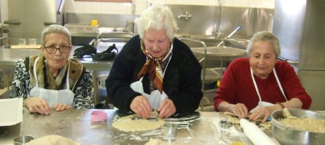 Como la fiesta siempre viene acompañada de una buena gastronomía, un grupo de residentes del centro, una vez conocida la importancia de Santa Águeda, pasó el miércoles a elaborar el postre tradicional de la fiesta. Con ayuda de la jefa de cocina de La Alameda, los mayores hicieron bollos de manteca, recordando los ingredientes empleados dependiendo de la zona de la provincia.