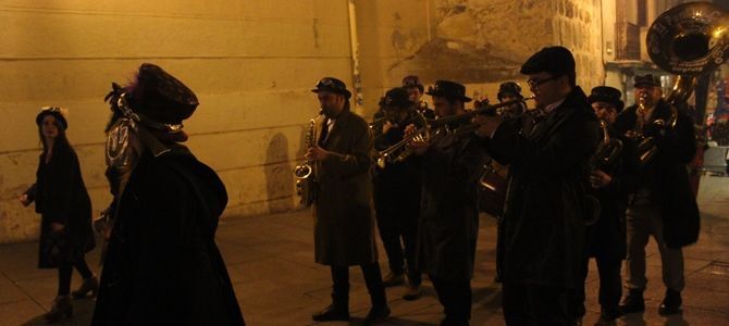 El espectáculo The Dance of Death abrió el gran desfile de carnaval, que a pesar de contar con pocas comparsas hizo disfrutar al escaso público que se dio cita en la calle.