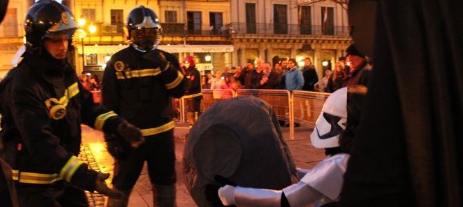 Hasta entonces, habrá que guardar luto por una sardina que fue enterrada ayer con caras muy diferentes, alguna de ellas incluso abstracta, y cuyo entierro se desarrolló bajo el mismo ritual pero con diferente música; algo que convirtió el acto en un evento solemne, como de ensayo de procesión de Semana Santa, para unos y de cuento Disney y verbena para otros. Así, mientras las comparsas de APADEFIM o Para Que Tú lo Bailes, por ejemplo, hicieron consumirse en las llamas a unas sardinas convencionales, otros como los miembros de la comparsa Pasitos optaron por hacer arder a una estrella de la muerte que los bomberos cogieron con cuidado, no fuera a desatarse una guerra de las galaxias en medio del Carnaval.