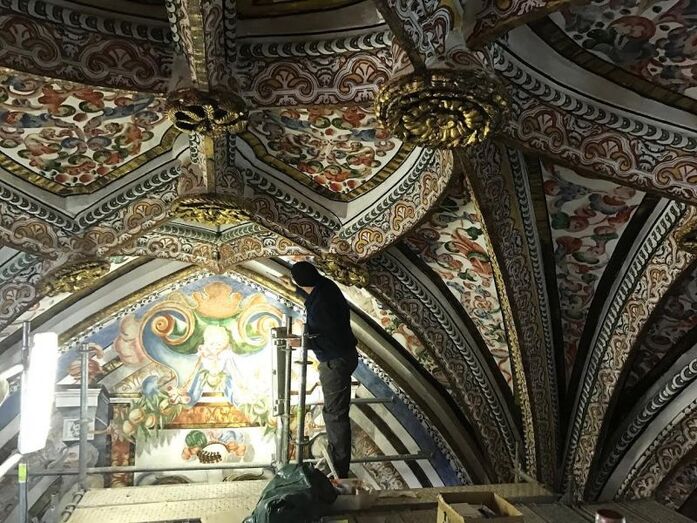 Los trabajos de restauración comenzaron a principios de enero sobre las pinturas murales con el objetivo de subsanar los daños que afectaban a la conservación, consolidar su estado y restituir su imagen.