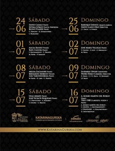 Este recital, que comenzará a las 21:00 horas, se incluye dentro del Festival ‘Noches del Real Sitio’, promovido y patrocinado por la Fundación Katarina Gurska, que este año cumple su décimo aniversario. La programación continuará con un total de 8 conciertos, que se celebrarán los días 24 y 25 de junio, 1 y 2 de Julio, 8 y 9 de julio, y 15 y 16 de julio y tendrán lugar en el Teatro Canónigos de La Granja de San Ildefonso, a las 20:00 horas y con entrada libre hasta completar aforo.