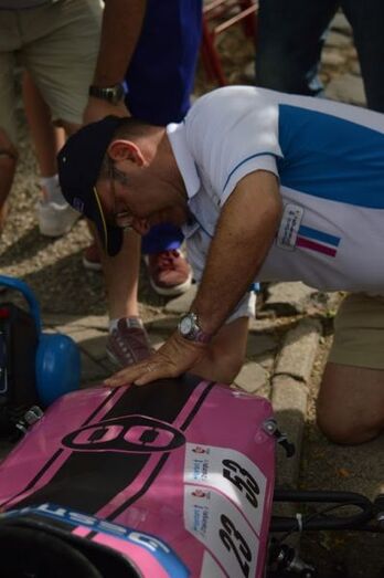 Los descensos de los dos vehículos de inercia segovianos en competición, el rosa y el azul, se encontraron con no pocos obstáculos, que el equipo fue solucionando sobre la marcha. Uno de los pilotos, Jaime, en la única bajada que pudo realizar, quedó séptimo entre 26 participantes.