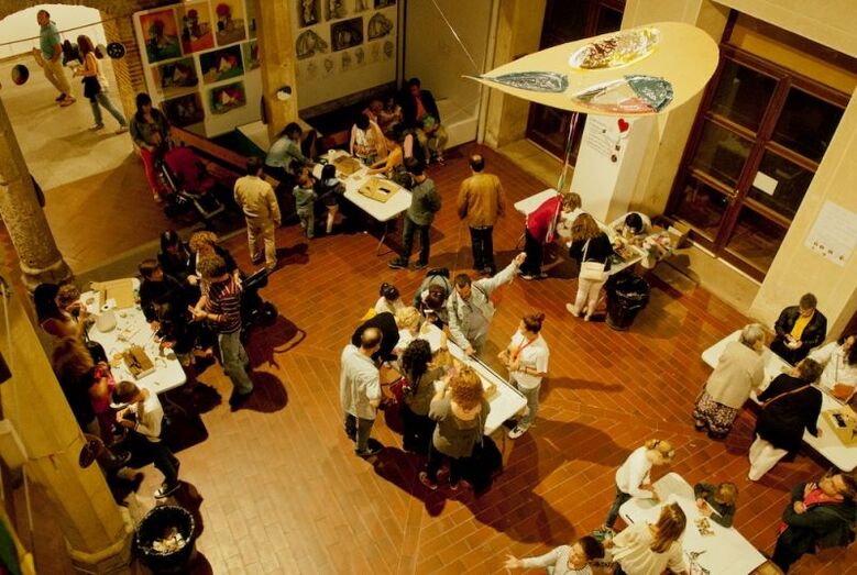 Los coordinadores de los talleres familiares organizados por el Taller Municipal de Animación a la Lectura tuvieron que poner más mesas y sillas para dar cabida a los niños y padres que durante toda la duración de la actividad, de 20:00 a 23:00 h, quisieron participar en ella. Estaban inspirados en el punto y en la cultura india.