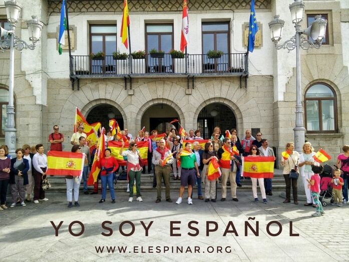 En el acto, alrededor de un quiosco empapelado de banderas españolas que rezaban “Som Catalunya Somos España” y “#noestaissolos”, segovianos portando banderas españolas han sacado ejemplares de la Constitución, han leído varios de sus capítulos y han gritado entre aplausos “¡Viva España!”. También vecinos de El Espinar se han acercado a la Plaza del Ayuntamiento para reivindicar una España unida.