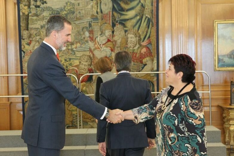 Su Majestad el Rey ha recibido, en el Palacio de la Zarzuela, a la alcaldesa de Segovia, Clara Luquero, dentro de la delegación formada por los representantes de los miembros de la Junta Directiva de PHotoESPAÑA.