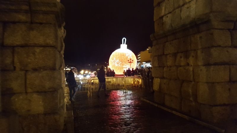 La decoración estrella: Una enorme bola de 14 m. de alto… coronando las obras en torno al Acueducto