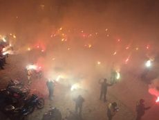 [Img #44263]En la villa tureganense ha tenido lugar un desfile de motos con antorchas y banderas en representación de los cinco continentes. Desde el castillo se han soltado unos farolillos rojos a modo de saludo a los moteros del mundo.