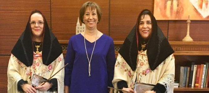 La sala Blanca del Ayuntamiento de Segovia ha sido, un año más, el lugar elegido para escenificar el simbólico traspaso del mando de la ciudad. Al son de la música de la zarzuela ‘La Picarona’, y acompañada por el concejal de Servicios Sociales, Igualdad, Sanidad y Consumo, Andrés Torquemada, la alcaldesa, Clara Luquero, ha entregado el bastón a quienes a partir de ahora y por unos días, asumen el mando, las hermanas Elena y Esther de Andrés, alcaldesas de la Fiesta de Santa Águeda de Zamarramala 2018.