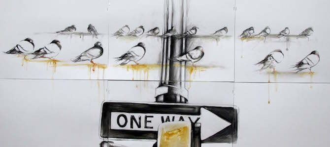 [Img #44819]Y, en una suerte de realismo mágico, los hace dialogar con elementos del nuevo mundo y las nuevas tecnologías. Así, la naturaleza, esencial en la obra de Moro, la pura segoviana y la desbordante mexicana, interactúa con elementos decadentes obra de la mano del hombre y sus ansias de grandeza, como la composición que describe el propio artista: “La jaula oxidada se balancea, ligeramente con el canto del pájaro que observa un avión hacia el infinito”.
