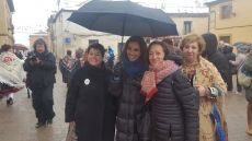 El pregonero hacía referencia al tiempo de esta mañana de domingo de niebla, lluvia y frío, que no ha impedido que cientos de personas se congregaran en la Plaza de Zamarramala para recibir a las alcaldesas de este año, las hermanas Elena y Esther de Andrés. El Ome Bueno e Leal de Zamarramala ha recaído en esta ocasión en ISMUR (Iniciativa Social de Mujeres Rurales), por su interés y defensa de los derechos de la mujer.