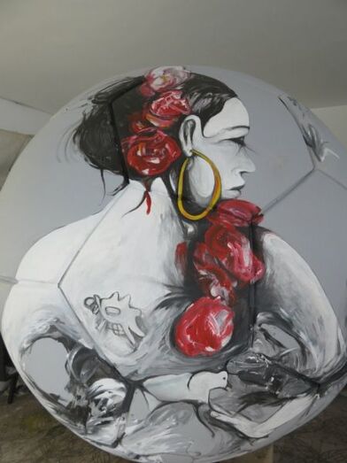 Precisamente en Ciudad México luce el balón español, junto con el resto de balones internacionales representados por sus respectivos pintores en el Mundial de Rusia 2018. Como Fernando Andriacci de México, Lao Gabrielli de Argentina, MHLucas de Brasil, Natasha Kroupensky de Serbia, Sahar Rostamkhani de Irán y Mohamed Abla de Egipto, entre otros.