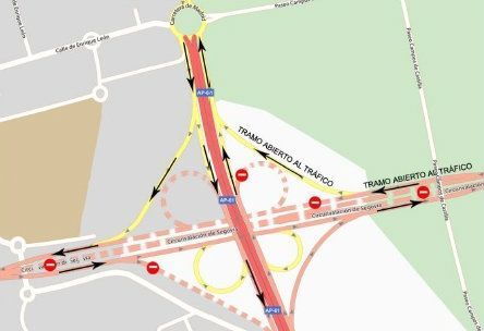 De esta manera, se podrán realizar los trabajos de voladura de taludes en roca en la proximidad de los lazos cerrados al tráfico, se prolongará el muro de contención de la vía colectora de la margen derecha y se procederá a la construcción de estribos y pilas de la nueva estructura que pasará sobre la SG-20 para dar conexión directa a la autopista AP-61 en sentido Madrid.