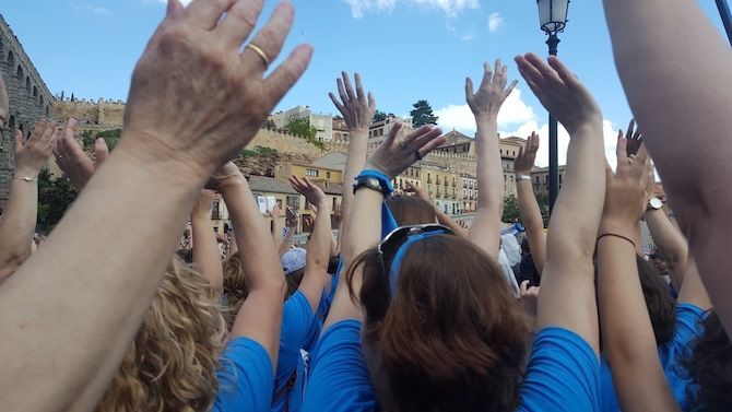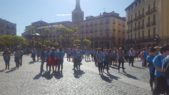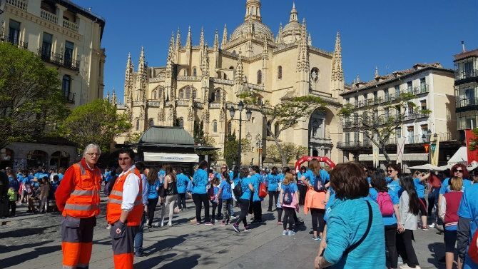 En la línea de salida, en la Plaza Mayor de Segovia, a las 11:00 horas de esta agradable mañana del 6 de mayo, 3.300 mujeres de todas las edades, desde niñas hasta abuelas, se daban cita para celebrar el Día de la Madre y homenajear a la Madre Tierra. Este año, el color de la marea que inunda las calles de Segovia es el azul, como la bandera de Segovia, como el cielo y como el agua. Pasado el mediodía, la marea azul, tras recorrer 5 kilómetros por las calles de Segovia, llegaba al Acueducto, a cuyos pies ha esculpido ese monumento natural tan querido por los segovianos, que es la Mujer Muerta, que ha acogido el guiño con una sonrisa de nieve.