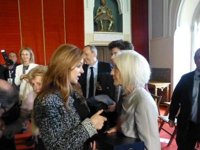 Nos confirmó que ni el arquitecto Renzo Piano ni la Comisaria Europea Marianne Thyssen (nada que ver con la rubia del museo ni con el de los ascensores) asistirían y dio la palabra a la representante de los galardonados, Rebeca Grynspan de la Secretaría General Iberoamericana, que fue la mas aplaudida tras un discurso breve y sentido. “España representa la pluralidad, la libertad y la diversidad. En nosotros no se premian nuestras capacidades sino el el uso que hemos sabido hacer o intentar hacer de ellas”. Y se despidió con el machadiano “hay que intentar ser, en el buen sentido de la palabra bueno” y un vibrante ¡Gracias España! El resto de los premiados se limitó a desfilar y a dejarse colocar la banda con mas o menos gracia por nuestro nada habilidoso presidente…y vuelta a la silla.