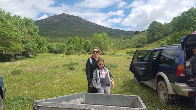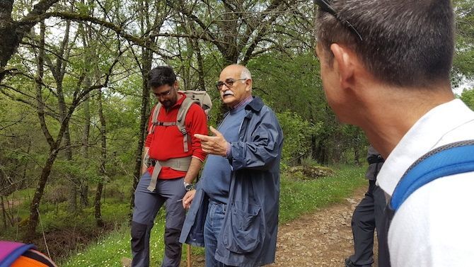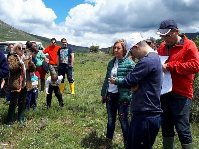 En este Día de la Cacera Mayor tan atípico, las madres y padres (AMPA) de los alumnos del colegio de Trescasas se dieron cita a las diez de la mañana en el Ayuntamiento, colaborador del acto. Los pastores del agua habían salido a las 9, una hora más tarde, por una previsión de tormenta que al final no descargó. Una vez llegados a la Madre, el lugar donde nace la Cacera Mayor del Cambrones, recién cortada por la Noble Junta para limpiar su cauce, los niños pudieron tocar con sus propias manos la cruz y la media luna aradas en la tierra previamente por los pastores del agua, que indican el inicio y el final de cada tramo de Cacera o quinto, en una tradición de siglos que viene de cuando poblaban estas tierras moros y cristianos. In situ, los historiadores del pueblo Eugenio Plaza, que publicó recientemente el libro ‘Ranchos y esquileos de Trescasas y Sonsoto’ con la colaboración de la Diputación y Miguel Yuste, medievalista, dieron a los niños unas clases magistrales de historia viva. A la expedición también se sumó el profesor que ostenta la Cruz de la Orden Civil de Alfonso X el Sabio, Santos Mazagatos, autor del reciente libro ‘De sol a sol. Vuelo planeado de una cigüeña sobre el Nordeste de Segovia’ y coordinador del libro ‘Cacera del Cambrones o de la Noble Junta de Cabezuelas, un estudio interdisciplinar de una obra hidráulica con plena vigencia, mantenida y utilizada por seis pueblos de Segovia’. Con este trabajo, sus cuatro alumnos ganaron el XI Certamen de Jóvenes Investigadores de 1998, en un ejemplo de excelencia en la enseñanza en Castilla y León. Dos de esas jóvenes investigadoras, Alicia Mazagatos y Patricia Bermejo, emparentadas con el representante de la Noble Junta José Antonio Martín, son hoy vecinas de Trescasas y beneficiarias a su vez de los derechos históricos que siendo niñas investigaron. Este sábado, sus hijos e hijas aprendieron a ser los pastores del agua del futuro.