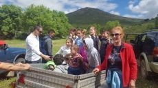 Tras la lectura del manifiesto, "cada mochuelo, a su quinto". Tuvimos el privilegio de comer con el de San Cristóbal, que este año ostentaba la Alcaldía de Cartas en la persona de Fernando de Andrés Plaza. Los habitantes de San Cristóbal conocen muy bien lo que son los usos y aprovechamientos tradicionales de la Sierra de Guadarrama que han contribuido a mantener hasta nuestros días: La caza, la pesca, la agricultura y ganadería, los aprovechamientos micológicos y forestales, aparte de su disfrute a paseo, a caballo o en bici, forman parte de su ADN. Por eso, en la comida se recordó la riquísima trucha ahumada de estas aguas o el chorizo de jabalí. Sobre la mesa, un cordero de la tierra de altísima calidad, de Manrique de Sotosalbos, asado en la Panadería de Brieva. Y vuelta a la faena, siesta, mus, tango, o lo que se tercie.