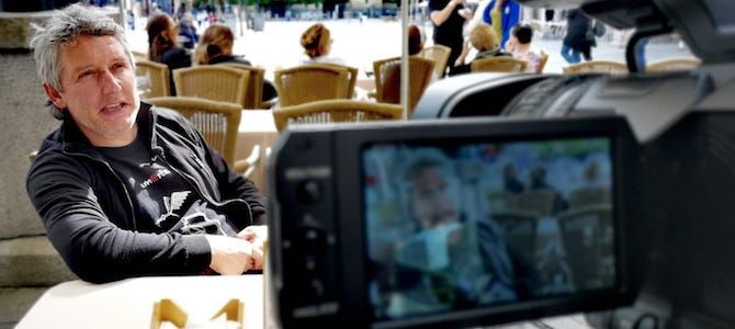 LM.- El balón ahora mismo se está desmontando para viajar a Rusia, que se empezará a exponer allí creo que el 10 ó el 12 de junio. Tiene una estructura de aluminio que se montará al lado de la Plaza Roja, como a 150 metros y es un balón en el que todos los recuerdos que tengo yo, musicales especialmente, de mi país, y las imágenes de Paco de Lucía, del flamenco, un poco lo que representa a España fuera, porque dentro se ve todo de una manera diferente. Tú tienes una visión de México del mariachi, del tequila, de una serie de cosas que a lo mejor puede haber elementos como la entomofagia, los insectos comestibles, que dentro del país lo identificamos, pero fuera pones un saltamontes y la gente no lo identifica con México. Entonces yo quería que el balón fueran unos símbolos, que la gente cuando lo vea, vea la Península Ibérica, vea España, vea Andalucía, vea el flamenco y vea esas campanadas tocando con esa fuerza. [En ese momento están sonando las campanas en la Plaza Mayor]