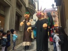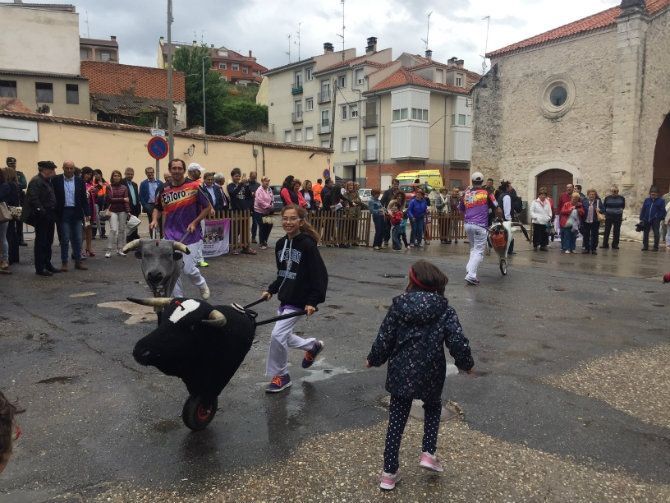 Momentos antes se obsequió con un bocadillo de jamón a quienes asistieron al almuerzo del segador, mientras una docena de marcas adscritas a Alimentos de Segovia expusieron sus productos en las proximidades de la fortaleza de los Duques de Alburquerque, y se repitió el encierrillo infantil junto al arco de San Basilio.
