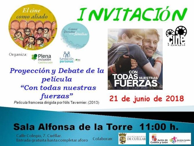 Dentro de la Jornada, a las 11:00 h. en la Sala Cultural Alfonsa de la Torre, inauguración de la Jornada por parte del Presidente de APADEFIM y secretario de Fundación Personas, D. Maxi Viloria, seguido realizaremos un Cine Fórum, (abierto a todo el público hasta completar aforo), proyectaremos la película “Con todas nuestras fuerzas”.