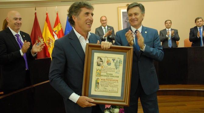 A continuación, el Presidente de la Diputación le entregaba la distinción. Francisco Vázquez recordaba que “después de tantos momentos inolvidables que nos hizo pasar Pedro Delgado siguiendo su trayectoria profesional como deportista en la élite del ciclismo, logrando el triunfo en el verdadero campeonato del mundo de pruebas ciclistas por etapas como es el Tour de Francia en la edición de 1988 y las Vueltas a España en 1985 y 1989, se antojaba absolutamente necesario que ya tuviera un reconocimiento al más alto nivel posible de todos los que pueden otorgarse en la provincia de Segovia, por parte de su institución más representativa como es la Diputación”.