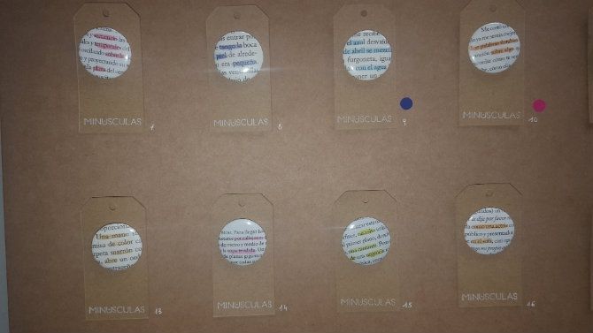 “'Minúsculas' es un ejercicio de azar y control, un campo de juegos para descubrir y componer. Imanes y chapas que, por una vez, no anuncian ni protestan, sino que susurran poemas para pegar en la nevera o prender en la solapa. Esta exposición es producto de horas de buceo entre páginas desechadas a la caza de encuentros de palabras, de chapoteos entre restos de taller, donde siempre hay tesoros de acuarela. Y ahí, en los límites del arte con minúsculas -pequeño, discreto, sencillo- nace esta colección de piezas únicas para manos finas y miradas sensibles”. Con estas bonitas palabras Gael Zamora, educadora artística, explica la pequeña gran exposición que ha estado adornando estos días la librería Intempestivos. Desde el Palacio de Quintanar, donde Gael imparte talleres de creación para niños, nos deletrea en este vídeo este abecedario de piezas ‘Minúsculas’ y redondas. Aunque quedan ya pocas, puedes adquirir tu ’Minúscula’ contactando directamente con la artista a través de su email: gaelzala@yahoo.es.