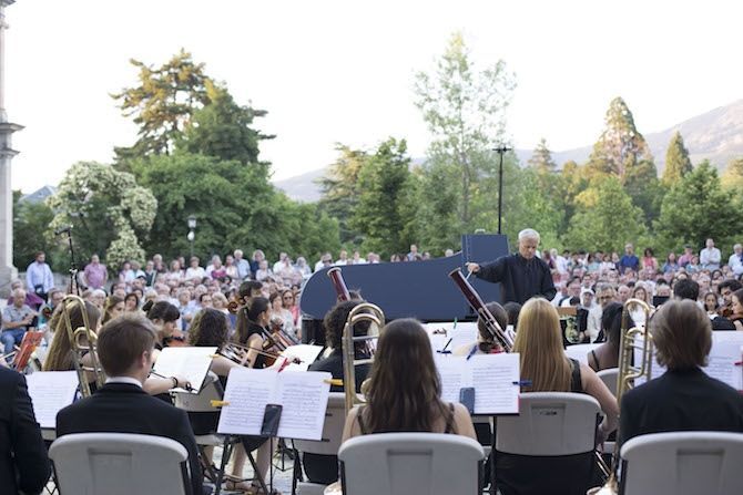 El Patio de Coches al completo, vibró nada más comenzar los primeros compases del concierto con el más que conocido Concierto para piano nº 2 de Rachmaninov, interpretado magistralmente por Luis Fernando Pérez. Tras el descanso, coincidiendo con la aparición de las primeras estrellas de la noche de San Juan, el concierto alcanzó su punto álgido con un preciosísimo extracto de obras del ballet del Lago de los Cisnes de Tchaikovsky.