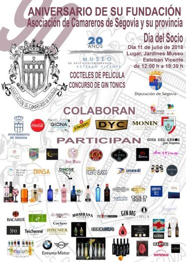 La Asociación de Camareros de Segovia y su Provincia cumple 90 años. Y lo quiere celebrar dedicándoselo al socio y a la sociedad de segoviana: Con cócteles de película, concurso de gin tonics, presentación de la Guía del Arroz y paella. Se trata de un evento que, como informan los propios camareros, sustituye al Gin Fashion, pero marca la misma programación.