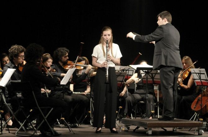 La actuación, que fue el concierto final de alumnos del Máster de Dirección Sinfonica, Instrumental y Vocal del curso 2017/2018 del CSKG, contó con la presencia de la solista Irene Martínez al clarinete.