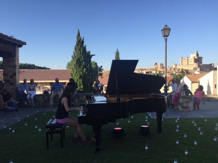Vecinos de la villa y visitantes llegados de toda la provincia, e incluso de provincias limítrofes han podido disfrutar de una tarde-noche mágica en la que las notas de los cuatro pianos de cola repartidos estratégicamente por lugares emblemáticos de la localidad se han entremezclado con el sabor del pasado y del rico patrimonio de la villa. Un ambiente especial al que se han sumado con la llegada de la noche las velas aportadas para la ocasión por al empresa Ambientair.